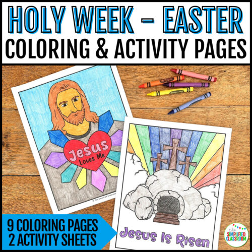 $3.00Looking for Holy Week Worksheets to engage your students? These religious Easter coloring and activity pages feature key moments from Jesus’ death and resurrection, making them perfect for Christian schools, Sunday school, and homeschool lessons. Help kids reflect on the true meaning of Easter while enjoying a fun and creative activity! Religious Easter Coloring – INCLUDES: 9…