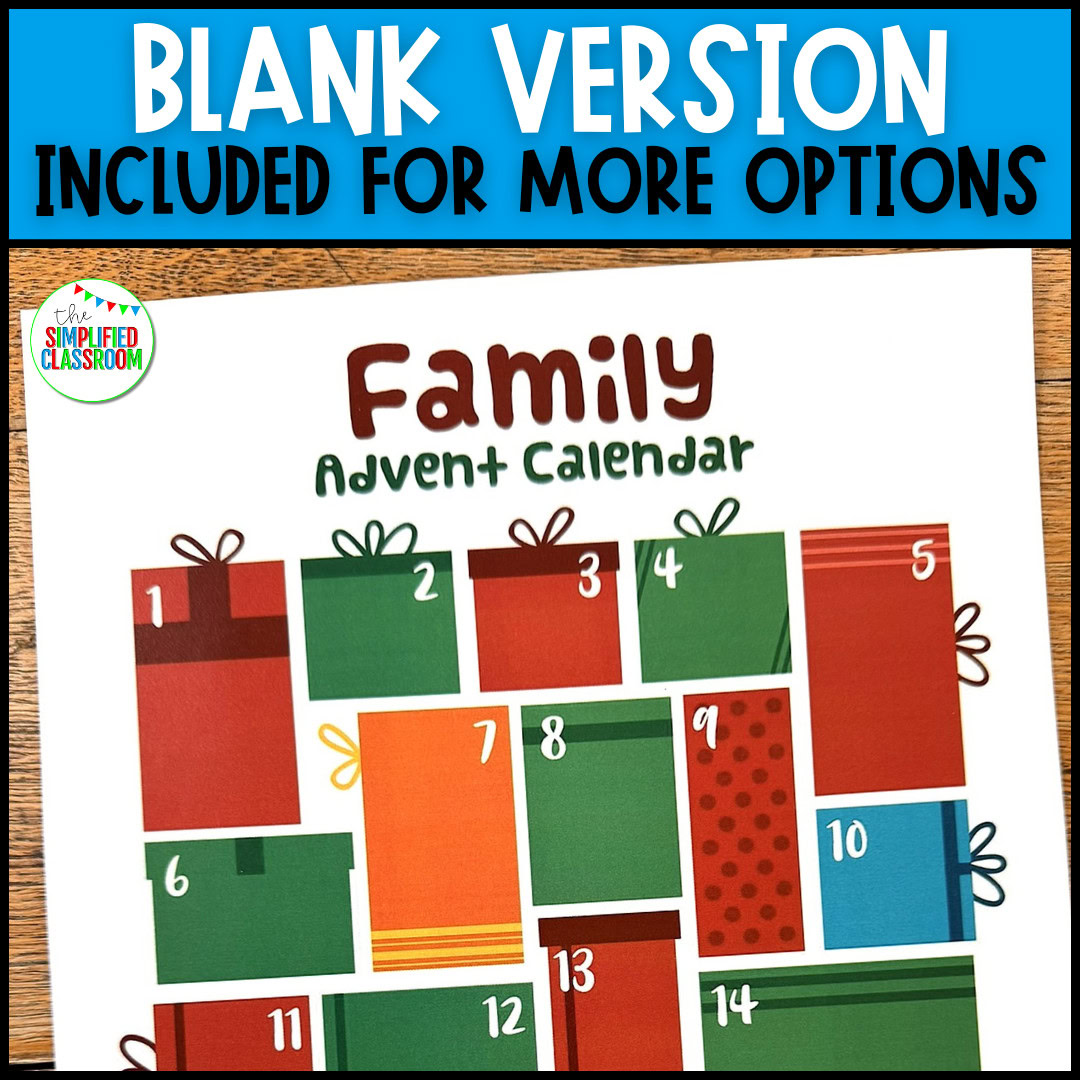 Make the countdown to Christmas magical with this Family Advent Activity Calendar! Not only is it perfect for teachers, parents, or homeschoolers, but it also offers a wonderfully simple way to bring joy and connection into the holiday season. As December approaches, this festive resource helps families engage in meaningful daily activities that spark excitement and togetherness. Whether you’re looking for ready-to-go ideas or instead prefer to customize your own, you’ll find that this calendar includes a version for everyone—making it incredibly easy to create a holiday tradition your family will love!
