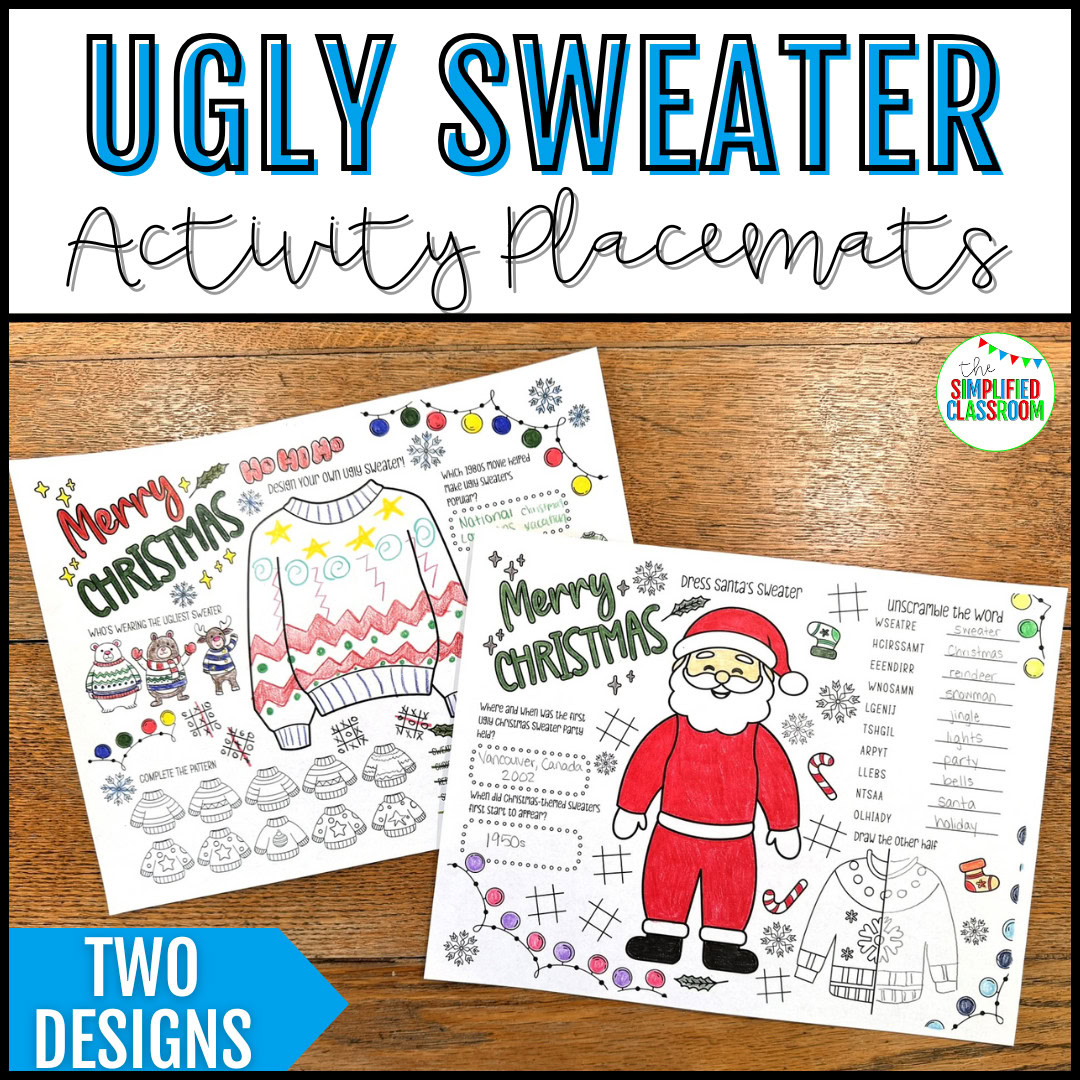 - 2 Unique Ugly Sweater Placemats (Activity Mats)