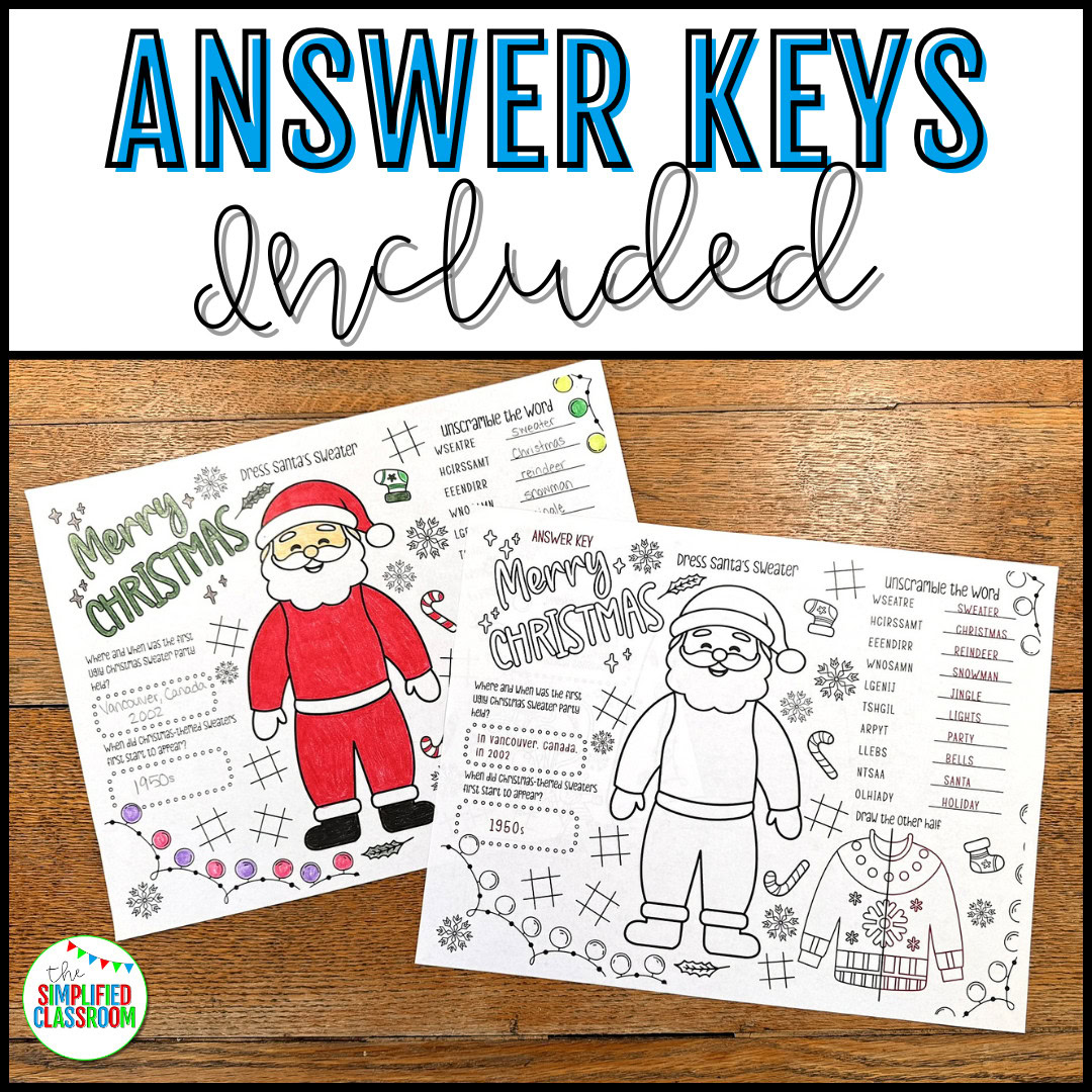 These printable mats are black-and-white for easy photocopying and coloring, making them great for classroom use or take-home packets. Kids will love the interactive activities, while you’ll love how they encourage critical thinking, creativity, and holiday cheer – all in one festive resource!