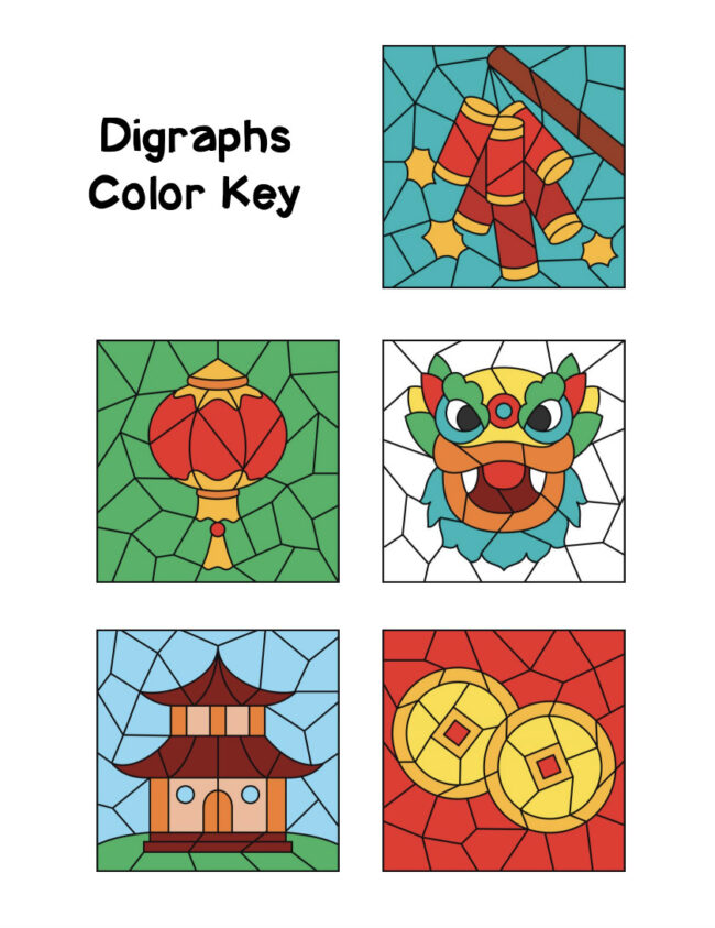 Color by Code Coloring Activities Chinese New Year Digraphs