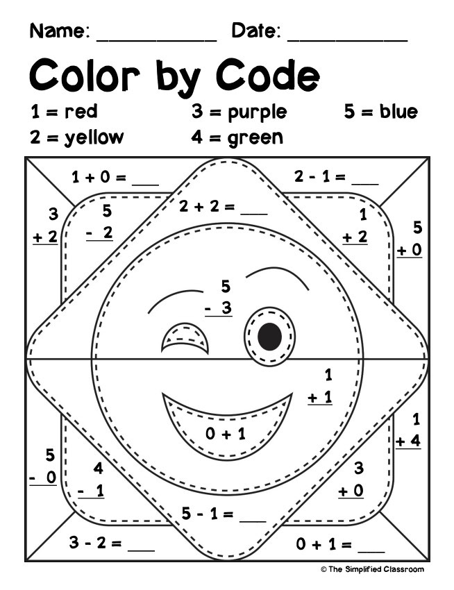 This product includes 5 color by code pages that focus on the skills of adding and subtracting within 5. I plan to use these pages for some fun back to school review for my first graders!