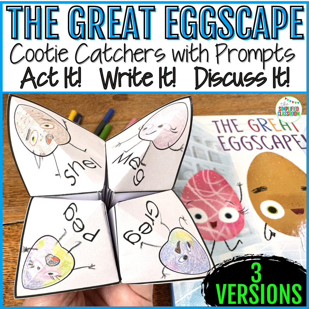 Make your Easter literacy lessons extra engaging and unforgettable with this set of 3 interactive cootie catchers inspired by the hilarious book The Great Eggscape! Whether you are looking for a fun comprehension review activity or a festive way to spark meaningful classroom discussion, these printable activities are the perfect fit. Additionally, because they are designed in the beloved cootie catcher format, students are instantly motivated and excited to participate. Furthermore, each cootie catcher features fun and thoughtful prompts that help students deepen comprehension while simultaneously having fun with their favorite runaway eggs. Not only do these activities review character actions and story details, but they also encourage creative thinking and promote rich classroom conversation in a hands-on, student-friendly format.