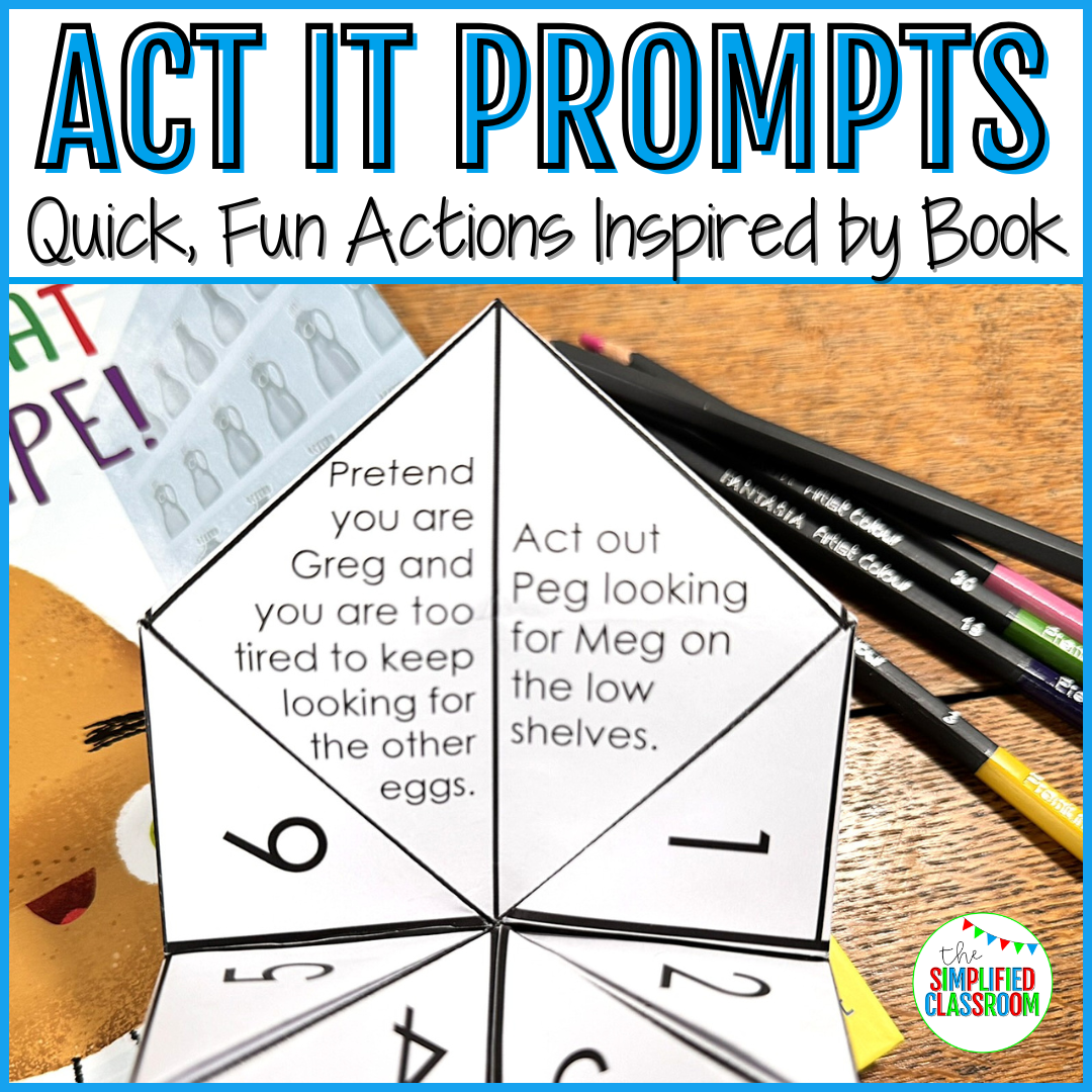 - Cootie Catcher #1 – Action Prompts Students act out scenes, poses, and silly situations based on the story’s characters.
