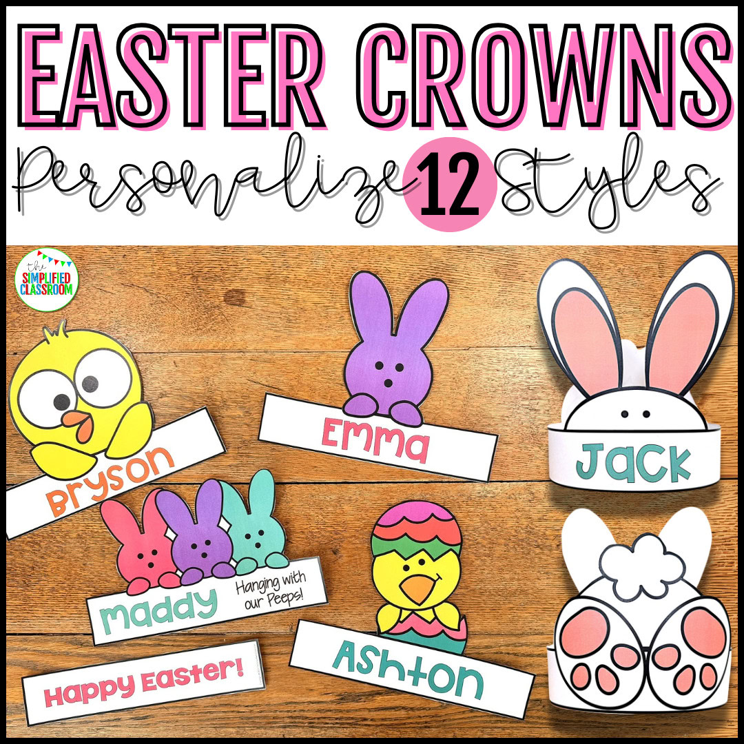 Easter Headbands are an adorable way to get students excited about Easter with this fun and engaging printable headband. In fact, your students will love seeing their OWN NAME on these easy-to-personalize Headbands. Not only that, but this printable headband features an Easter Bunny, Peep, or other springtime animal along with a variety of cut-and-paste decorations. Additionally, you get twelve different styles in both color and black and white. Furthermore, you can use Bulk Create in Canva for quick and easy edits, or alternatively, you can edit in PowerPoint.