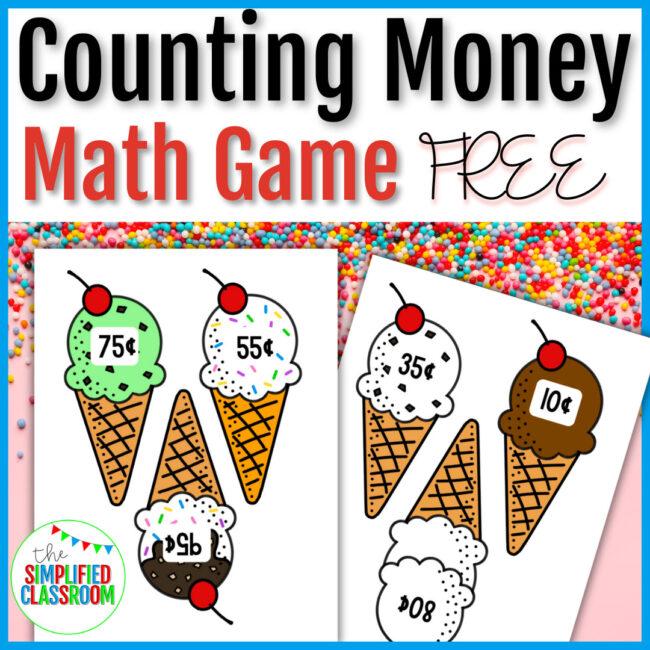 FREE Ice Cream Counting Money Matching Math Game