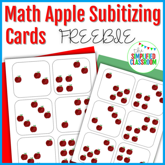 These subitizing cards can be used as a math center or for extra practice at home. Students work to quickly recognize how many apples are on each card without having to count each apple individually. Using the visual dice patterns, this activity helps students grow their number sense!