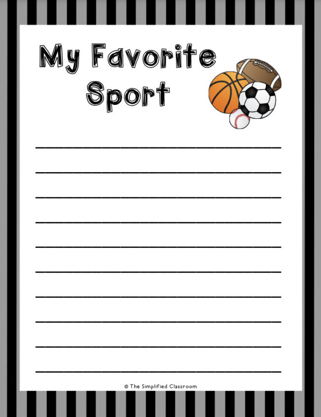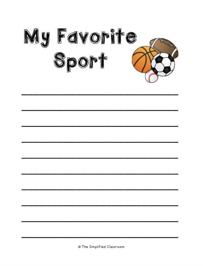 – A PDF file a writing template about your student’s favorite sport.