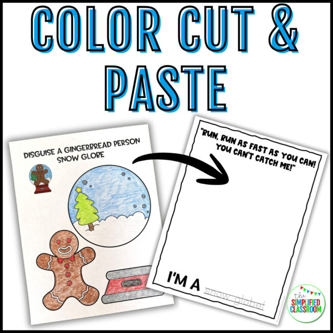 First, students can choose from five adorable disguise templates and decorate their gingerbread man in creative and unique ways. Then, as they bring their creations to life, they can practice writing through a simple and engaging component that prompts them to describe their disguises, explain their ideas, or even tell a short story about their gingerbread character.