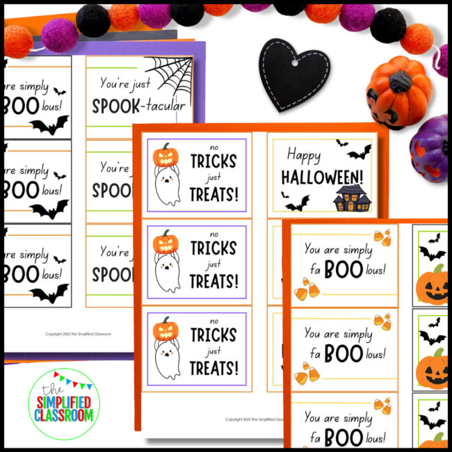 Wish your studentsย Happy Halloweenย with these cuteย Gift Halloween Gift Tagsย orย Happy Halloween Cards. These printable Halloween gift bag tags are perfect for classroom parties, student rewards, trick-or-treat favors, or small gifts for coworkers, neighbors, and friends.