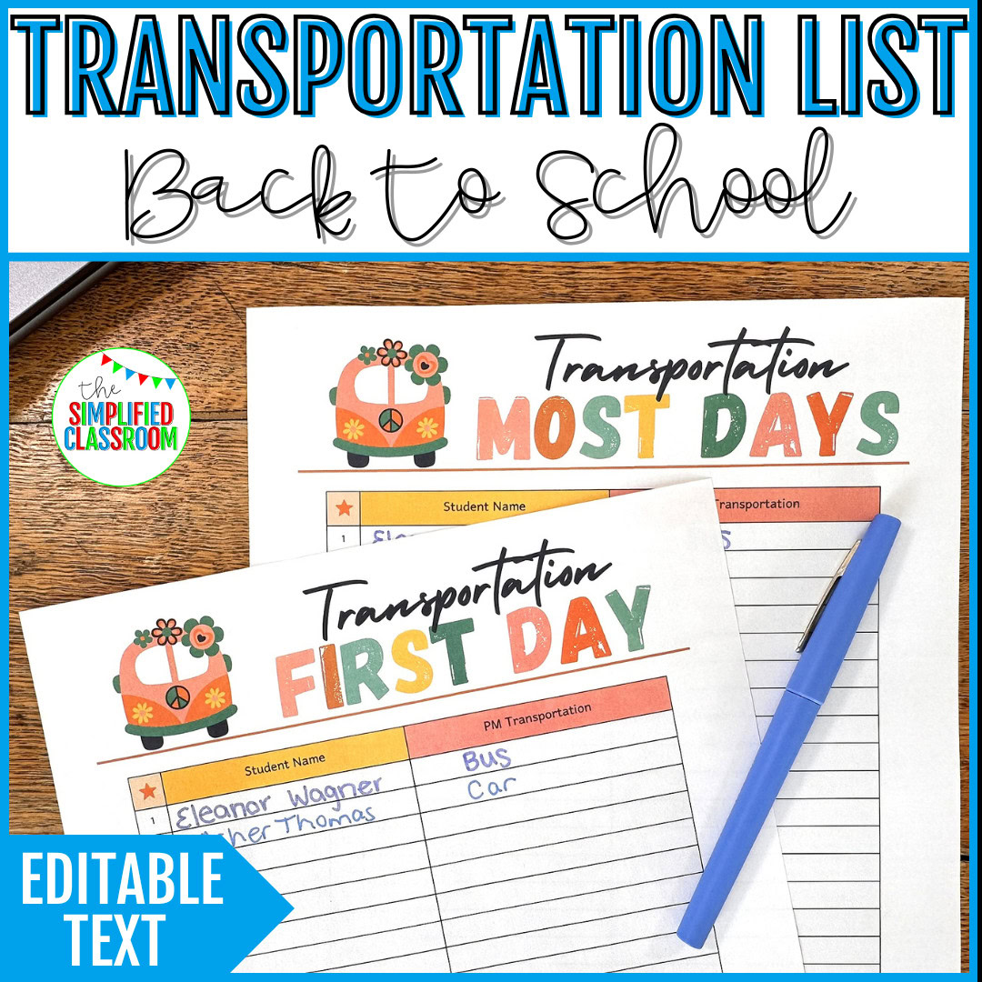 Looking for a School Form Transportation List for Meet the Teacher Night? If so, stay organized and keep students safe at dismissal with this editable Transportation Form, a must-have tool for the first week of school! Moreover, designed to collect how each student gets home, this simple yet effective form ensures smooth communication with families and provides peace of mind for you. In addition, this resource also includes forms for keeping track of AM transportation on the same sheet — so that you can manage both arrival and dismissal with ease. As a result, your classroom runs more efficiently, and families feel confident that their children are safe. It also coordinates perfectly with our Parent Questionnaire.