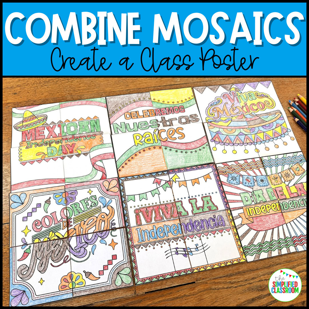 Mexican Independence Day Activities and Decorations Spanish Collaborative Coloring Poster Craft