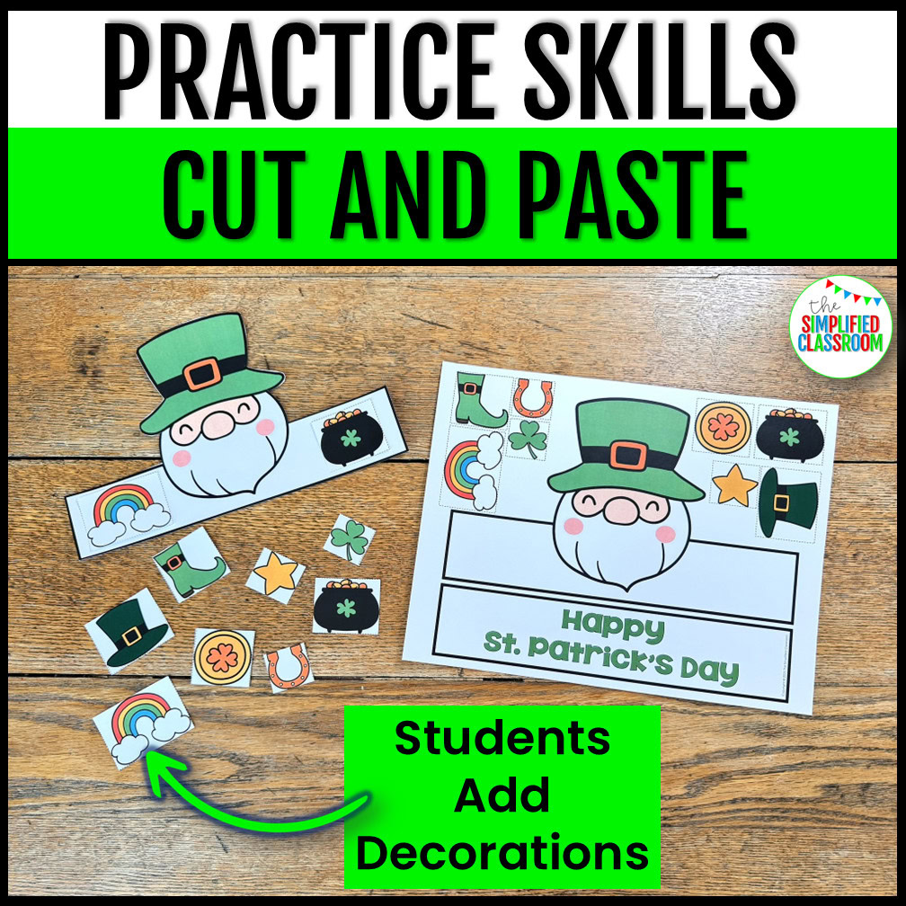 This St. Patrick’s Day headband is perfect for preschool, kindergarten, and first-grade students. It provides a great opportunity for cutting practice and can also be used in occupational therapy sessions. The cutting guides make it easy for young learners to cut out the pieces independently.