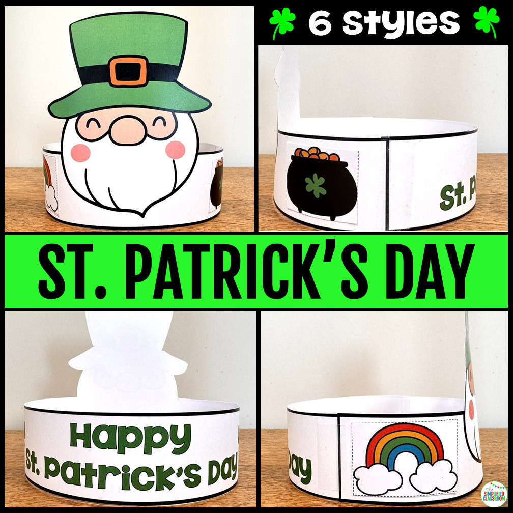 - Style 3: The option will give your students practice cutting and pasting! Students can cut out the cute decorations and paste them on the front of the headband. “Happy St. Patrick’s Day” is printed on the head strap.