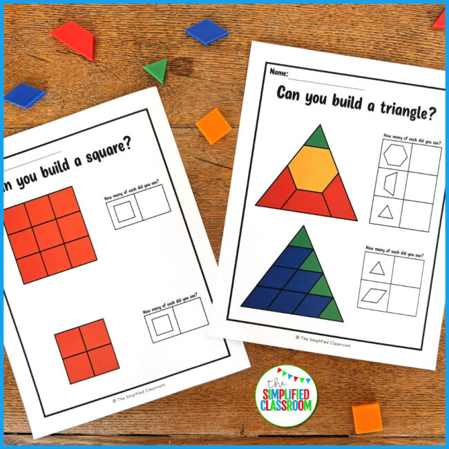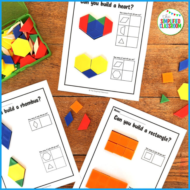 - Challenge studentsย to build each shape usingย pattern blocks or printable tangrams!