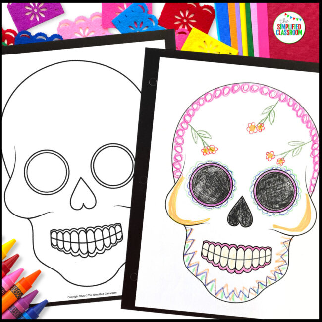 Celebrate the vibrant traditions of Dรญa de los Muertos and the spooky fun of Halloween with this engaging set of sugar skull coloring pages! Perfect for both elementary and middle school students, this printable resource includes five beautifully designed sugar skull coloring sheets, along with one blank template so students can design their own creative skulls. Furthermore, itโs an excellent way to combine art and culture effortlessly.