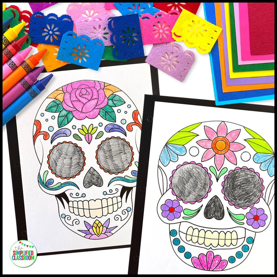 - This set of sugar skull coloring pages is an easy and low-prep activity that’s perfect for both Halloween and Día de los Muertos celebrations.