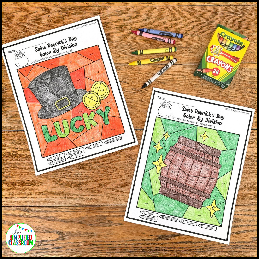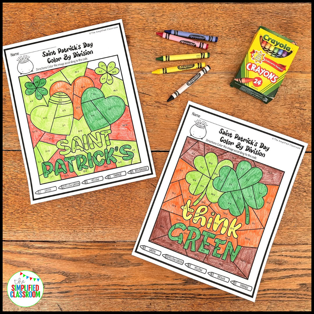 - Have students solve the division problems and color by code to create their St. Patrick’s Day masterpieces!!