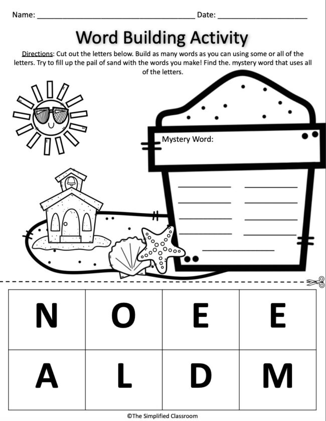 - Word Building Activity with a mystery word to be found using all 8 letters
